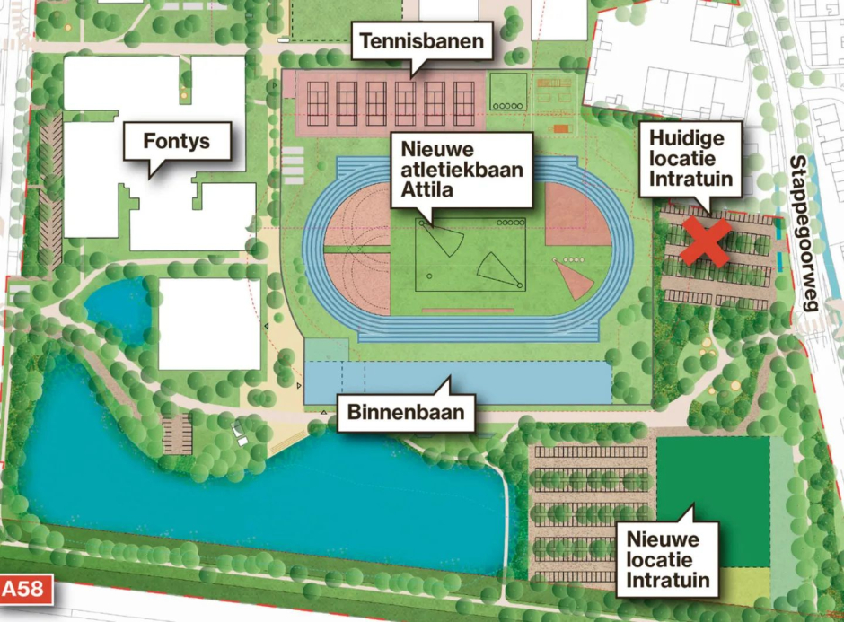 Al meer dan 10 jaar praten we met de gemeente over verplaatsing van de atletiekbaan. De hockey- en voetbalvelden rondom ons zijn al verdwenen, de Stadssporthal is gesloopt, de tennisvereniging is verplaatst, de honk- en softbalvereniging is verhuisd, en nu is de atletiekbaan aan de beurt. De gemeente wil ons verhuizen naar een plek ‘achter’ de huidige Intratuin aan de Stappegoorweg. Als bestuur staan we achter dit plan omdat er een grote indoor-atletiekhal op deze plek gebouwd gaat worden. Dat is een wens die we al heel lang hebben en waar we als vereniging veel profijt van zullen hebben.